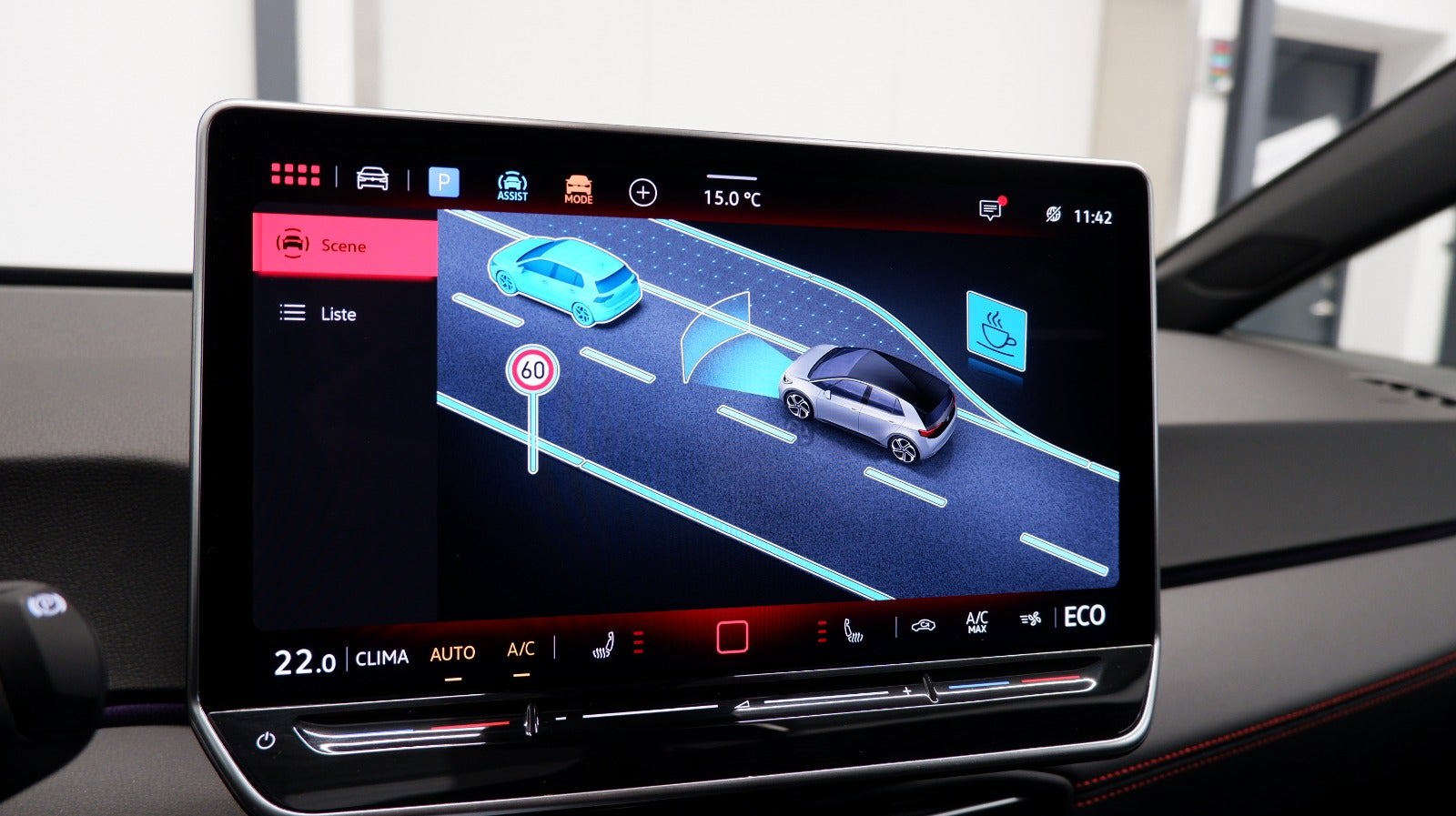 bakkamera, adaptiv fartpilot, fuld led forlygter, fjernlysassistent, vognbaneassistent, automatisk nødbremsesystem, navigation, apple carplay, android auto, sportssæder, 20" alufælge, varme i rat, 2 zone klima, nøglefri betjening, stofindtræk, træthedsregistrering, skiltegenkendelse, kørecomputer, infocenter, udv. temp. måler, regnsensor, sædevarme, højdejust. forsæder, 4x el-ruder, el-klapbare sidespejle m. varme, automatisk parkerings system, parkeringssensor (bag), parkeringssensor (for), elektrisk parkeringsbremse, dab radio, multifunktionsrat, håndfrit til mobil, bluetooth, musikstreaming via bluetooth, digitalt cockpit, trådløs mobilopladning, usb tilslutning, læderrat, automatisk lys, led kørelys